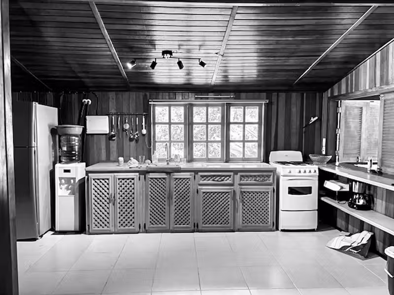 The Bunkleys spent five summers vacationing in El Limón and the surrounding areas before discovering and purchasing the home, which they call Casa Madera, in 2024. Its structure, crafted from honeyed Brazilian peroba rosa wood, was in stellar condition—although they did renovate a few things to make it more accommodating. “We wanted to stay true to the house because it has so much character, so we had local carpenters build everything from scratch,” says Jennifer.