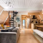 When Kenard and Jennifer Bunkley bought their A-frame in March 2021, they thought the home would only need a few cosmetic upgrades. But during the five years the home remained vacant, raccoons had settled in and the insulation had deteriorated past salvaging. The pandemic made finding the right contractor to come up to Pine Hill, NY almost impossible, so the couple and their three children mostly undertook the gut renovation themselves. They only outsourced or enlisted professional help for things like plumbing and electrical.